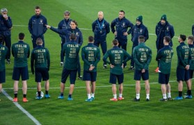 26日上午,中国国家男子足球队雨中继续进行场地训练,27名球员全部出现在训练场参加合练。训练开始前,...