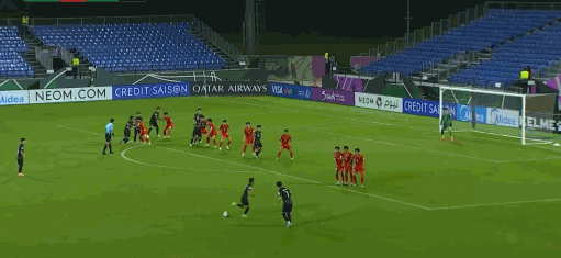 第20分钟,越南U23任意球被顶出,阮泰山抽射偏出